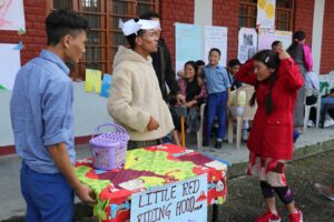 A book fair was held at the school basketball court A and court B right after the speeches. The students who participated in the book fair dressed themselves as a character from the book they have read and shared about the book. Two live dramas “Snow White and the Seven Dwarfs” and “The Little Red Riding Hood” caught everyone’s attention and stole the show at the book fair.
